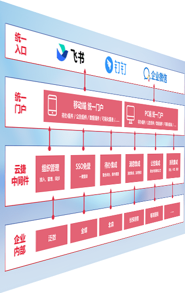 对协作平台提供支持服务,,支持企业应用与协作平台对接,,,,包含组织同步、、、、消息集成、、、待办集成等。。支持目前主流的协作平台:钉钉、、、、企微和飞书。。。