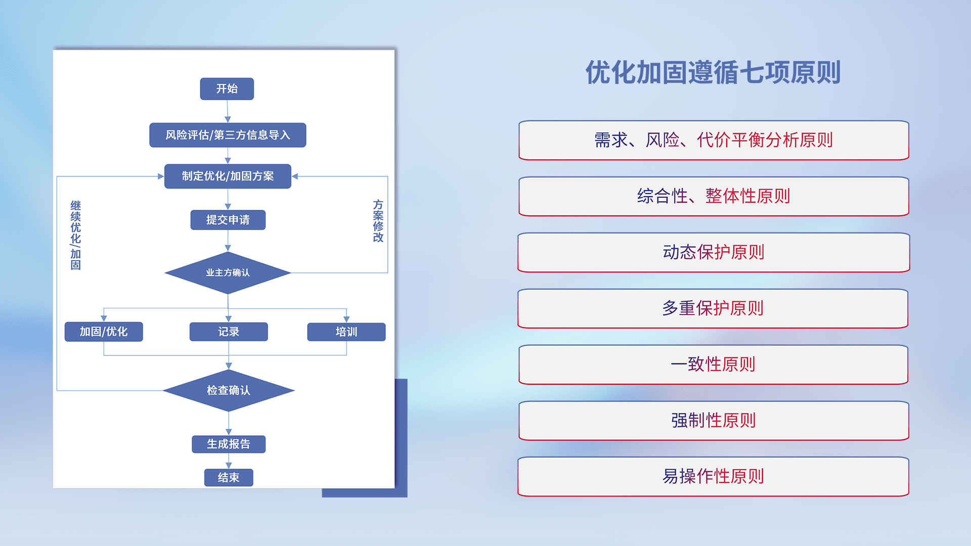 最大程度利用现有资产,,,,对评估发现的问题进行封堵与整改,,,防止漏洞被利用,,提升整体网络安全性,,,为客户带来高标准的优化加固服务。。。。